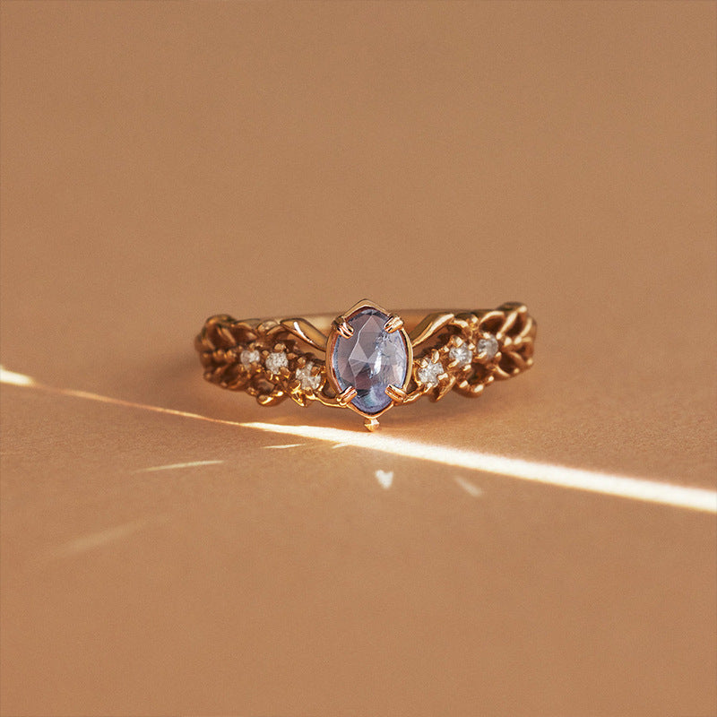 925 Silver Natural Mozambique Garnet Inlaid Ring
