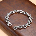 Elevate your style with this elegant sterling silver bracelet featuring an antique ring buckle design. Crafted from high-quality silver, it offers durability and a timeless look that complements both modern and classic outfits. The bracelet features a geometric buckle design that adds a bold and contemporary touch. Its versatile style makes it suitable for everyday wear or special occasions.
